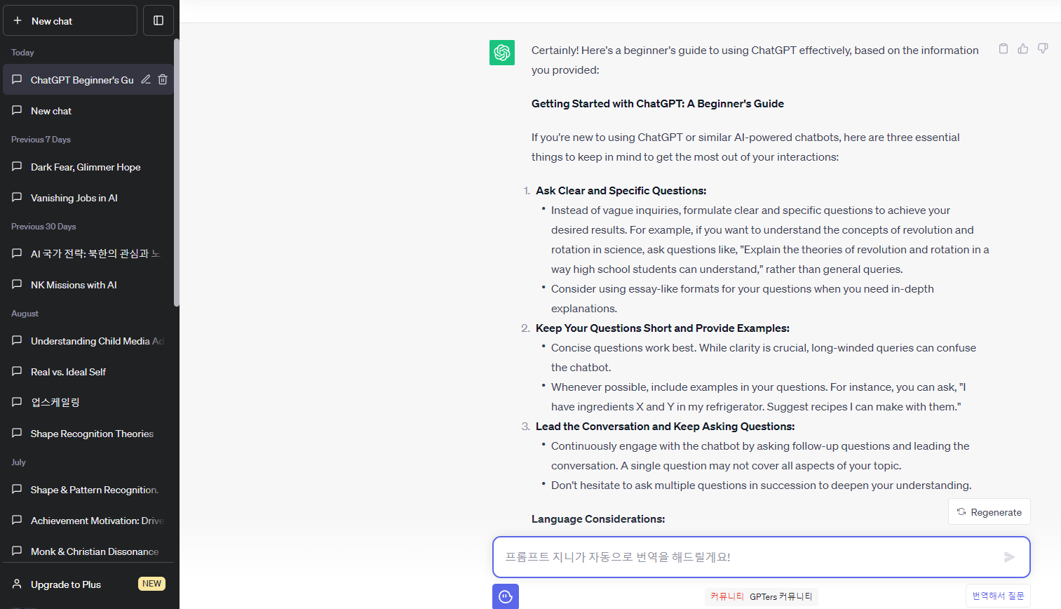 ChatGPT 또는 유사한 AI 기반 챗봇을 처음 사용하는 경우 상호 작용을 최대한 활용하기 위해 명심해야 할 세 가지 필수 사항은 다음과 같습니다.