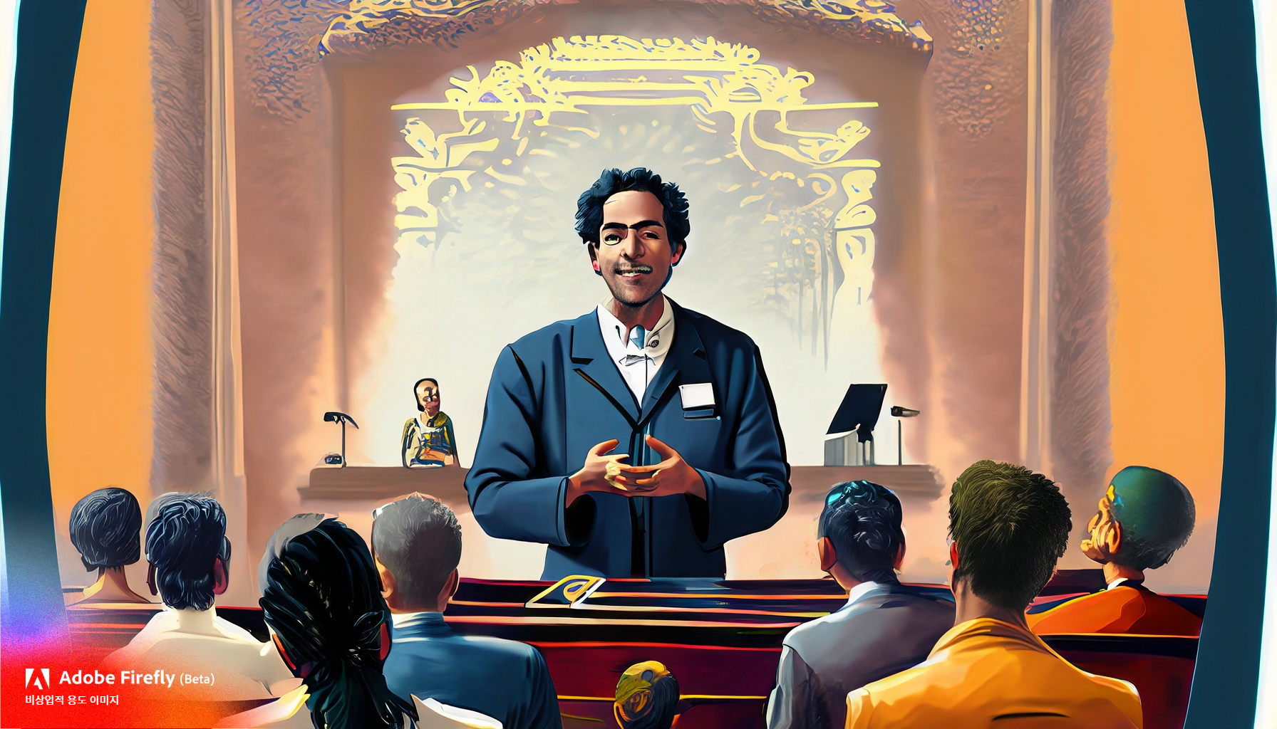 위의 그림은 인공지 어도비 파이어플라이에서 제작한 이미지입니다. (인공지능 설교자가 설교중인 모습)