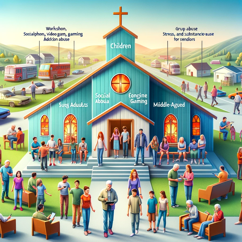 교회는 다양한 연령대별 중독 문제에 대응하기 위한 포괄적인 프로그램을 제공한다. 이러한 프로그램은 각 연령대의 특성과 중독 유형을 고려하여 개발되었다. 예를 들어, 초등학생을 위한 디지털 해독 캠프와 주일학교에서의 디지털 기기 사용 교육, 중학생을 위한 사이버 윤리 워크숍과 주말 야외 활동 그룹, 고등학생을 위한 스트레스 관리 세미나 및 청소년 멘토링 프로그램 등이 있다. 대학생과 청년들을 위해서는 삶의 균형 워크숍, 커리어 개발 프로그램, 목요일 밤 모임 등이 마련되어 있으며, 중장년과 노년층을 위해서는 건강 증진 세미나와 웰빙 프로그램, 커뮤니티 봉사 활동 그룹 등이 제공된다. 이러한 프로그램들은 전문가의 도움과 가정의 지원을 결합하여, 중독 문제에 대한 심리적, 사회적 이해를 증진시키고 영적 지원을 제공해야 한다. 이를 통해 교회는 중독자들과 그 가정이 겪는 문제에 대한 포괄적인 지원을 제공하며 중독 문제에 대한 다면적 접근을 통해 구성원들에게 필요한 지원을 제공할 수 있다.