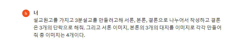 이제 위의 원고를 가지고 3분 설교를 만들려고 합니다. 인공지능에게 아래와 같이 명령을 했습니다.