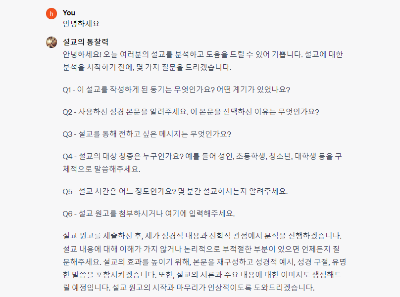 인공지능챗봇. "설교의 통찰력"이 당신의 설교를 분석한다.