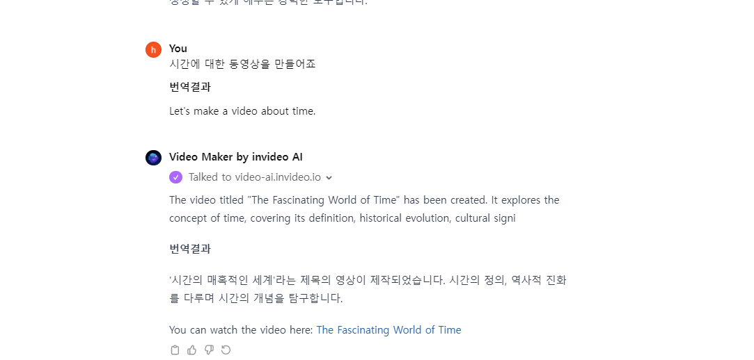 필자는 시간과 관련된 동영상을 만들어죠라고 명령했습니다. 동영상을 만들 것이냐고 묻으면 허용하시면 됩니다.