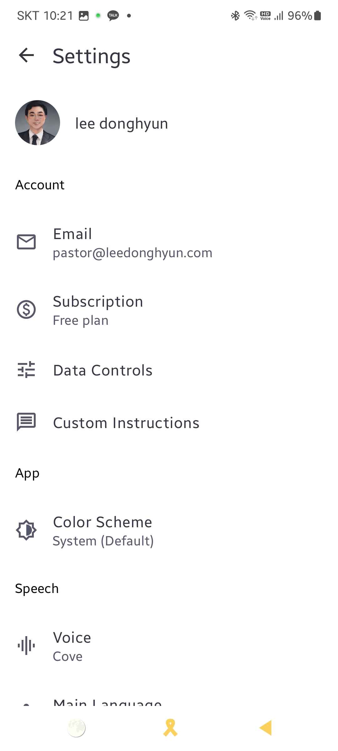 그리고 주로 사용하는 언어도 선택할 수 있습니다. 기본적으로 오토(자동)으로 되어 있는 특정 언어를 선택할 수 있습니다. 여러분들이 영어를 잘한다면 언어로 소통하면서 대화가 가능합니다. 기본으로 설정한 상태에서 그대로 사용합니다.