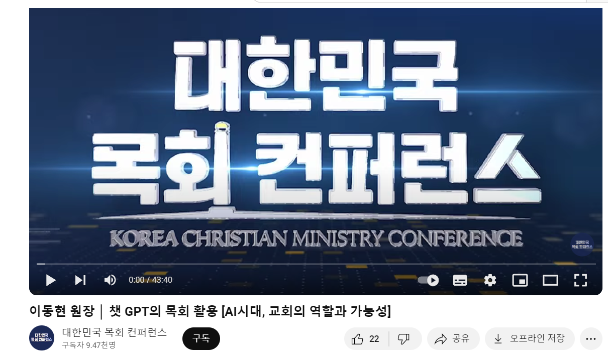 - 이동현 목사가 인공지능(AI)을 목회와 전도에 통합하는 주제를 소개합니다.