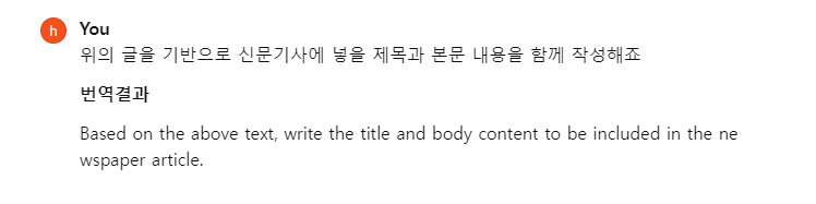 위의 동영상내용을 기반으로 블로그나 신문기사에 작성한 글을 작성해 달라고 할 경우의 사례입니다.