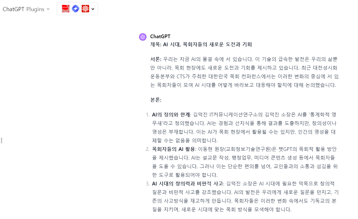 [GPT 플러그인 06] 웹페이지 내용을 요약하여 다른 시각으로 글쓰기