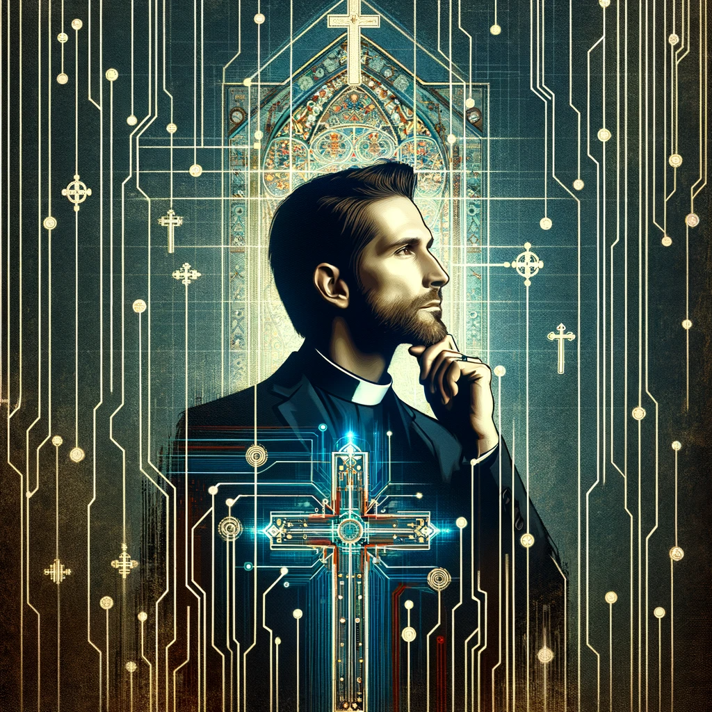 이러한 이미지는 Arti에서 논의된 바와 같이 전통적인 목회 역할과 AI가 제시하는 새로운 과제 및 기회의 혼합을 시각적으로 나타냅니다.