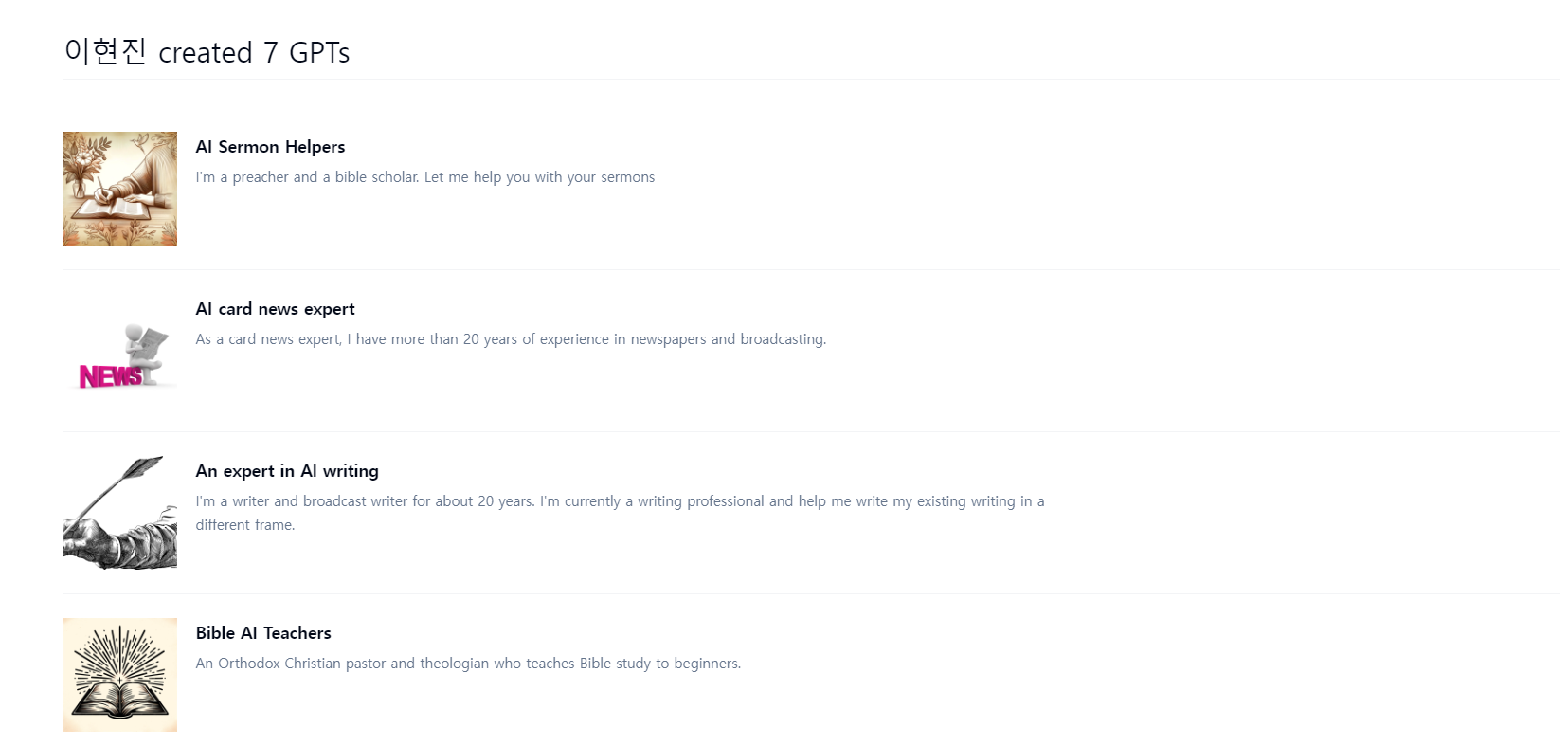 인공지능을 쉽게 이해하고 친하게 지내려면 아마도 기존의 챗gpt만으로는 재미가 없다. GPTs를 통해 다양한 앱들을 사용하면 할 수록 더 많은 세상을 경험하게 될 것이다. 더욱이 이를 통해 개인과 업무에서 지금까지 경험하지 못했던 세상을 걸어가게 될 것이 분명하다. 그렇다면 지금부터라도 그 길을 걸어가기 위해 차근 차근 배워야 하지 않을까? 라고 필자는 생각한다. 여러분들의 생각은 어떠한가요?