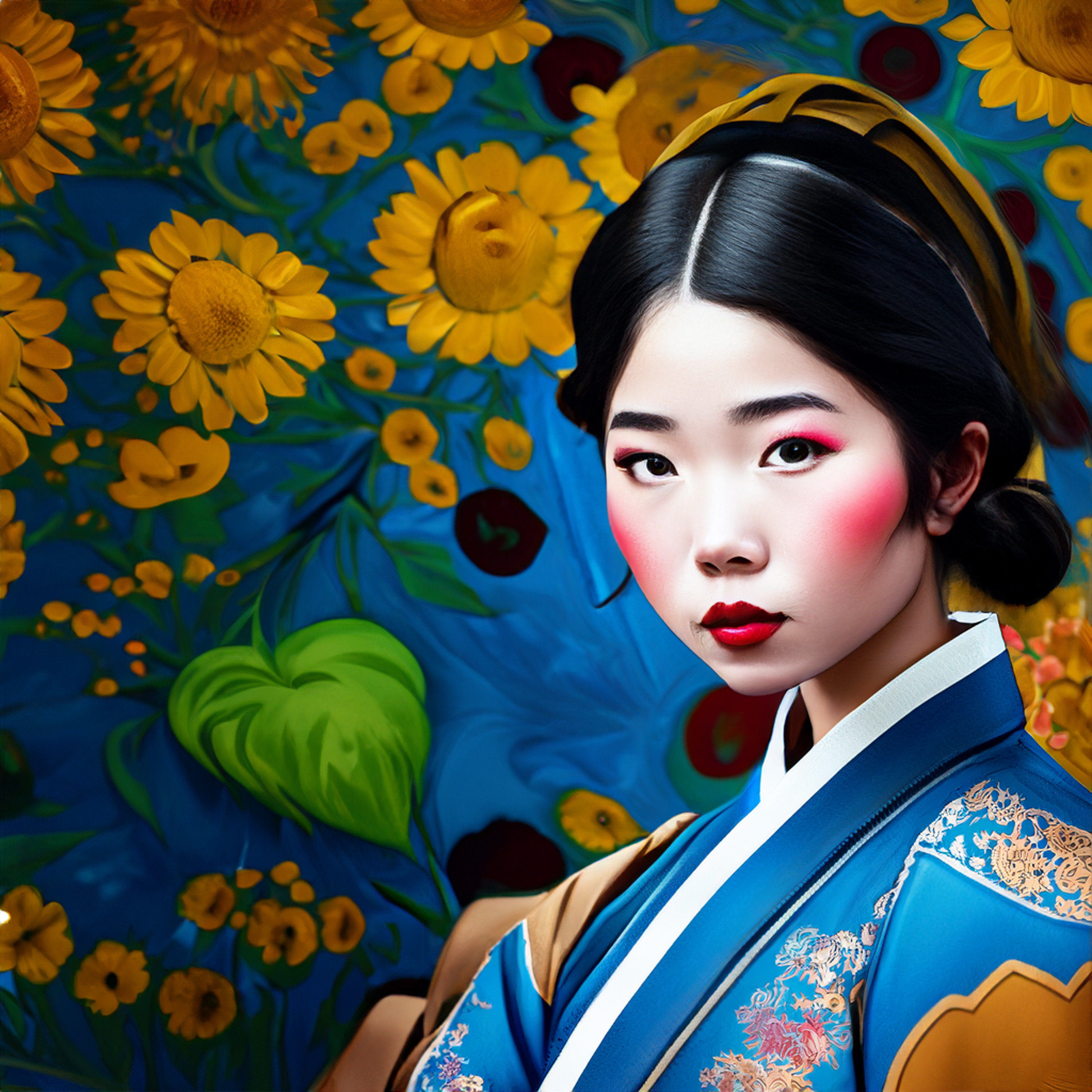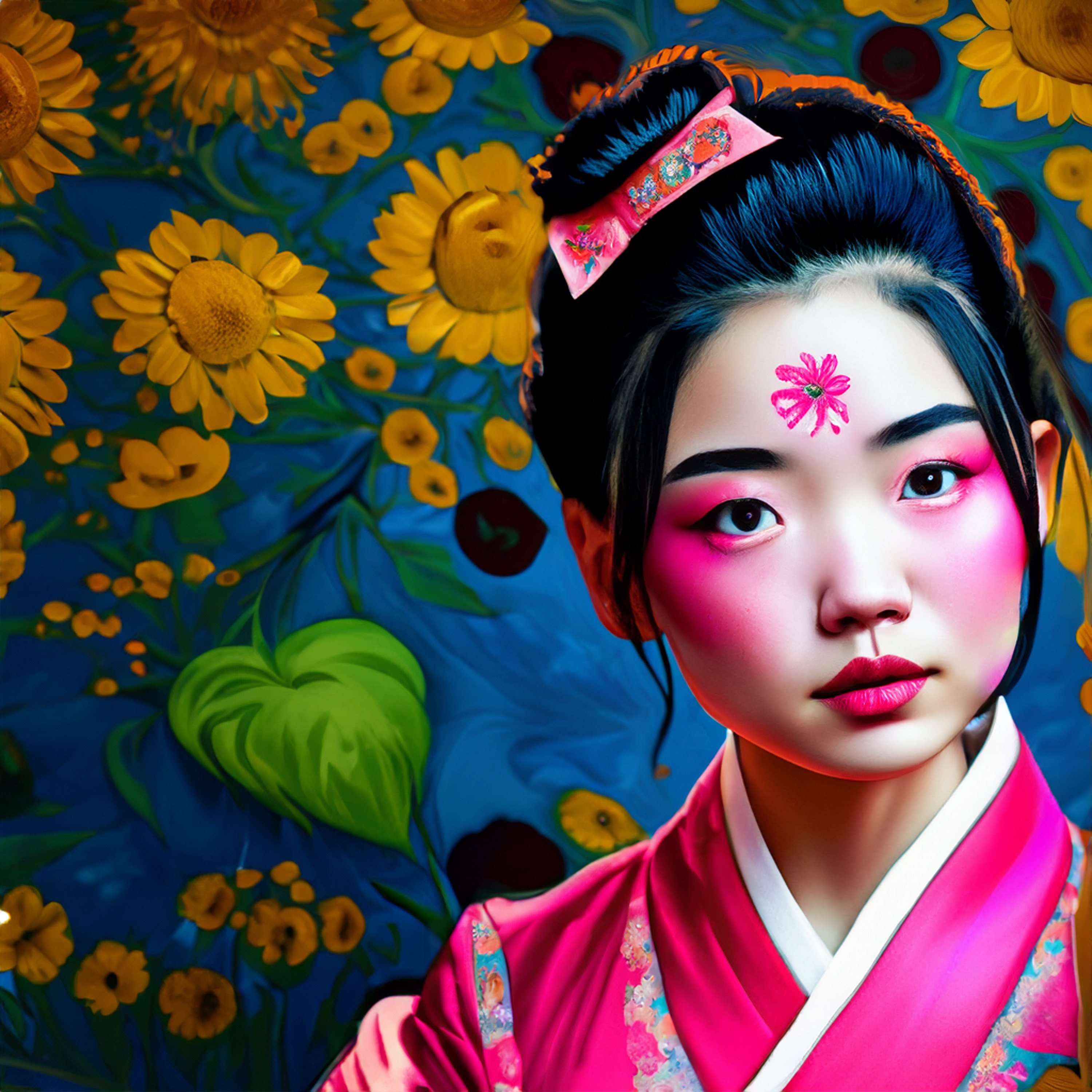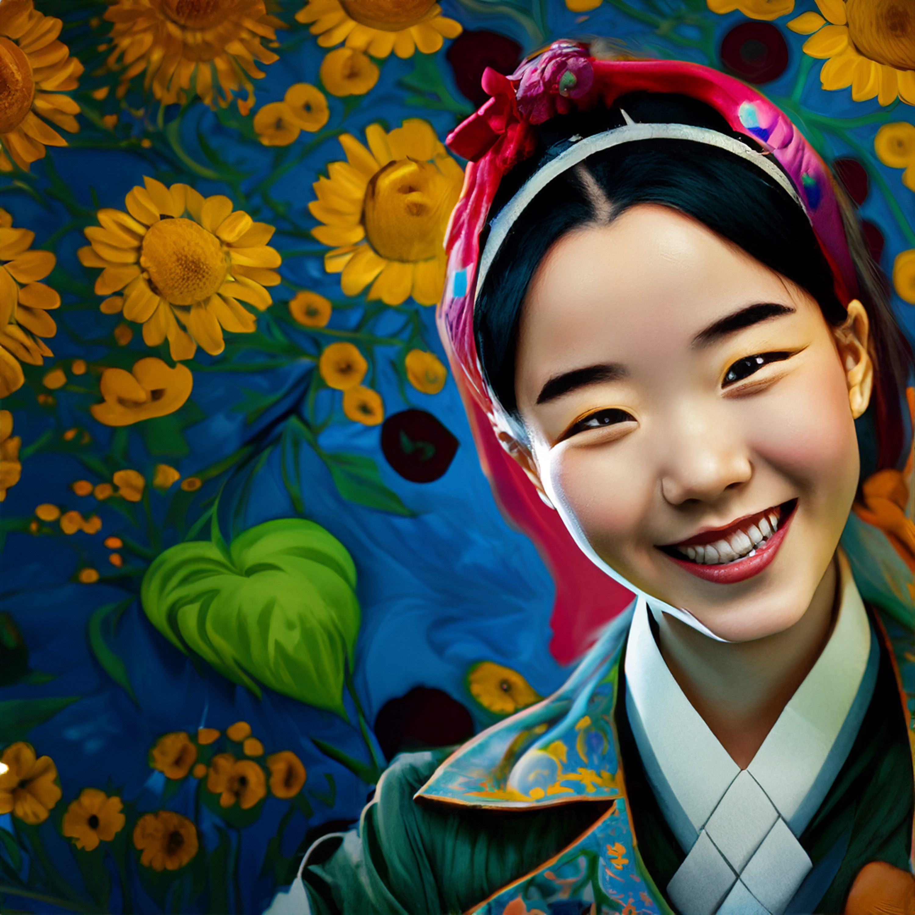 인공지능으로 그린 20대 여자이미지로 배경은 꽃 이미지로 만들어 달라고 요청한 이미지들입니다. 위의 이미지를 챗gpt를 통해 다시 그려달라고 요청했습니다. 요청시 여자가 아닌 남자로, 그리고 배경은 기존의 이미지(해바라기 배경)를 참조해서 그려달라고 했습니다. 그 결과 아래와 같이 그려졌습니다.