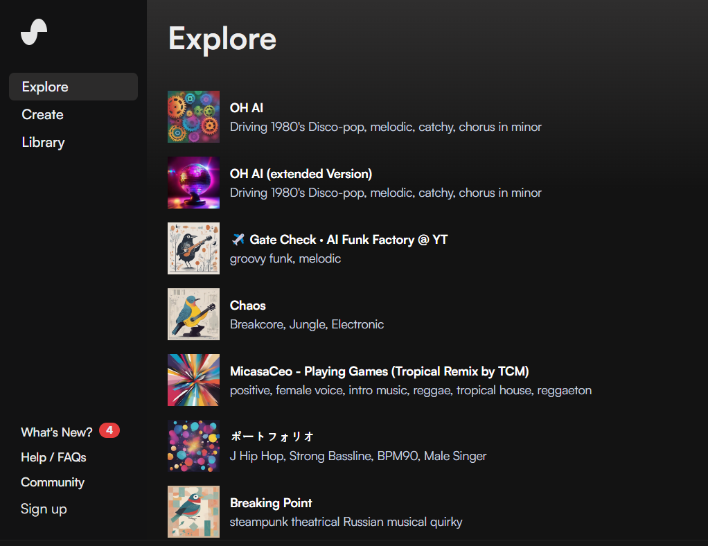 주제만 입력해서 노래를 만들 수 있지만 자신이 직접 작성한 가사를 통해 노래를 만드는 것을 추천한다. 해당 인공지능은 음원의 길이가 1분정도이기 때문에 노래 가사를 업로드시 노래가 중간에 잘리는 상황이 벌어진다.