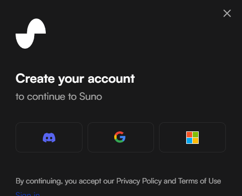 음악은 간단한 노래의 주제만 입력하면 노래를 생성하거나 가사를 입력하면 음악을 만들 수 있다. 아래의 이미지에서 우측 상단 메뉴를 클릭한다.