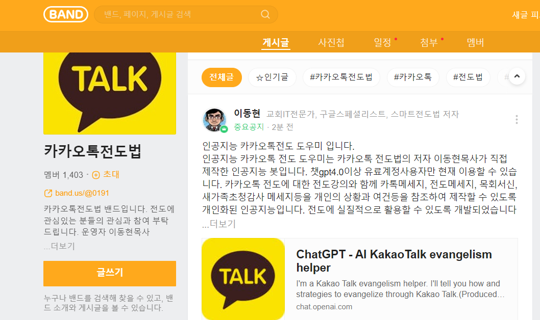 카카오톡전도법 밴드 : https://band.us/@0191