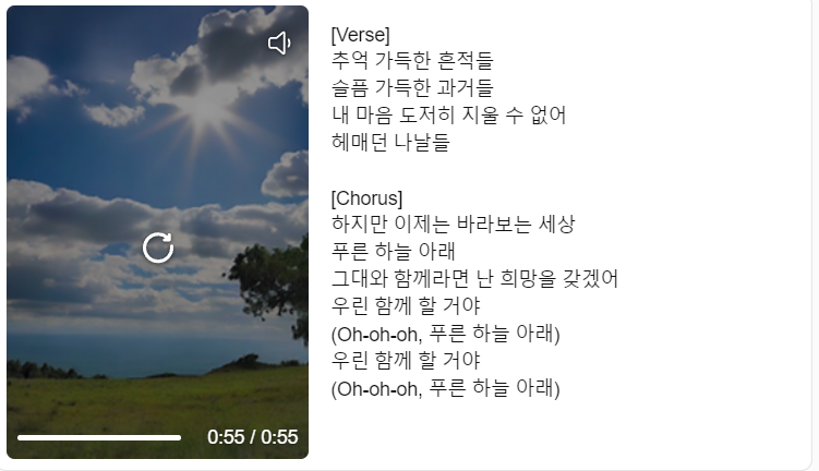 하지만 이제는 바라보는 세상 푸른 하늘 아래 그대와 함께라면 난 희망을 갖겠어