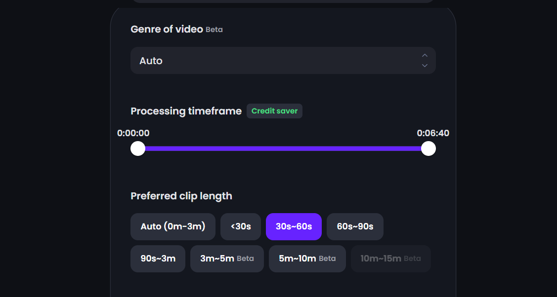 영상을 넣고 나서 클립의 길이를 선택한다. 30초미만과 30초에서 60초사이에서 선택가능하다.