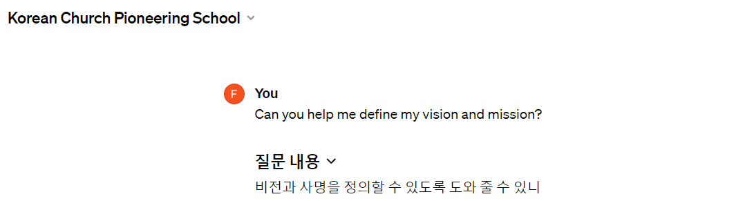 개척을 하기전에 교회개척의 비전과 사명을 정의해야 하는데 이에대해 인공지능에게 물어보았습니다.