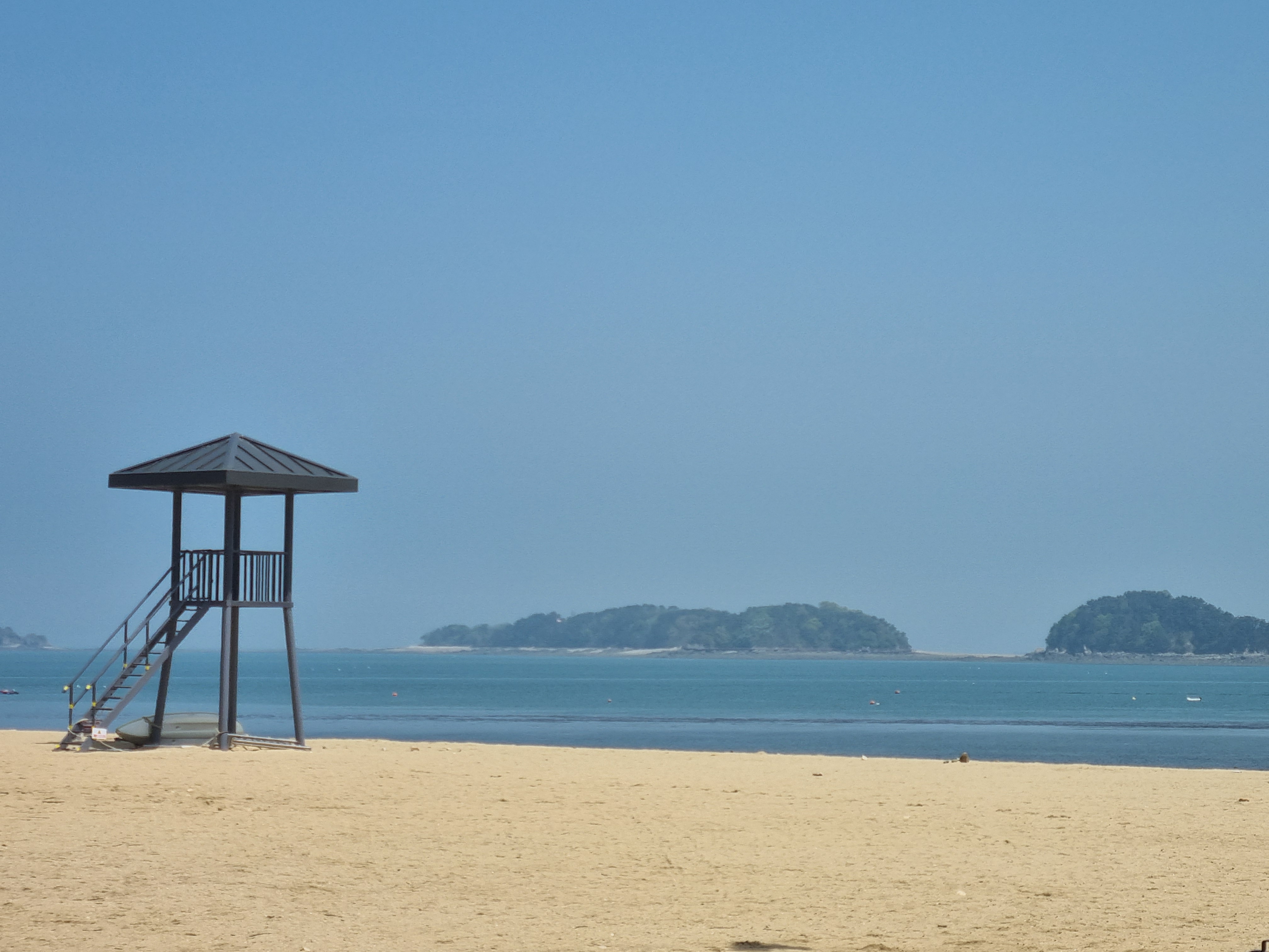 아무도 없는 바닷가. 혼자서 걸어보면 남들이 느끼지 못하는 감성을 느끼곤 한다. 푸른 하늘과 바다색이 동화되어 너무나 비슷한 색을 하고 있는 것 같다. 하늘이 바다같고 바다가 하늘 같다. 도리어 하늘이 더 평온한 듯 하다.