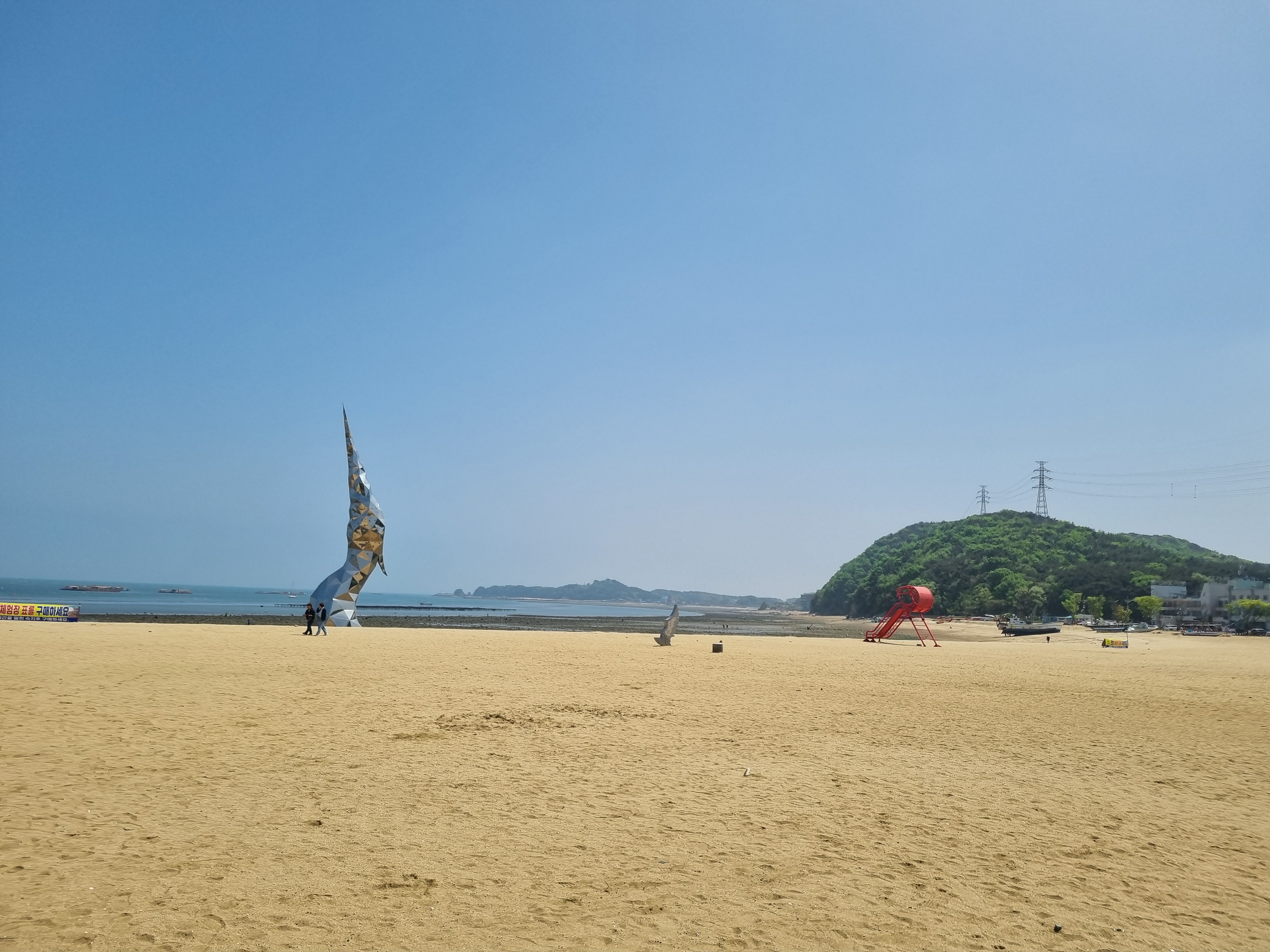 해변에는 사람들이 없지만 갯벌 체험장에 가보니 사람들이 엄청 많았다. 사람들은 의자와 호미를 들고 이곳 저곳을 다니면서 갯벌속 보물들을 캐고 있었다.