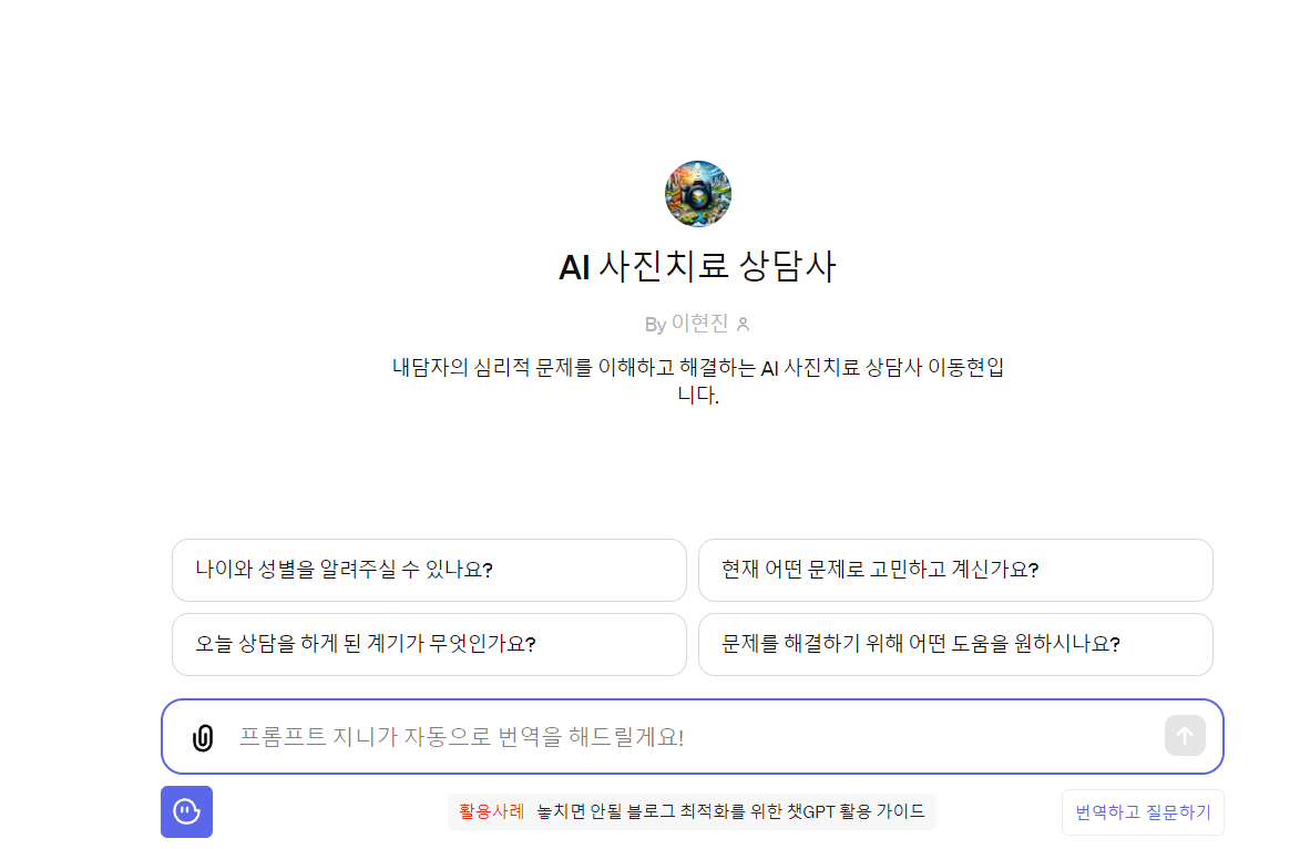 GPTs 사진 치료 상담사