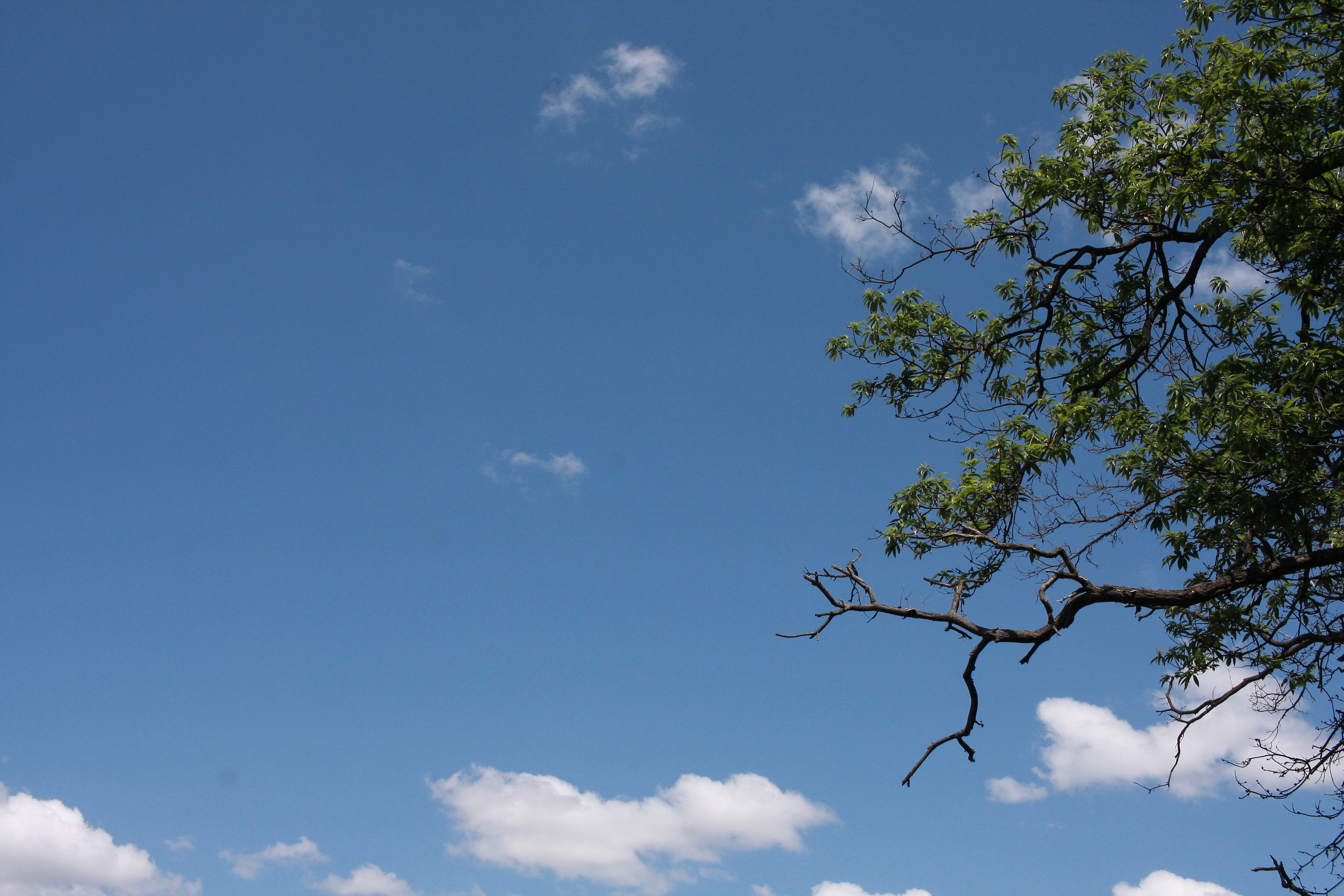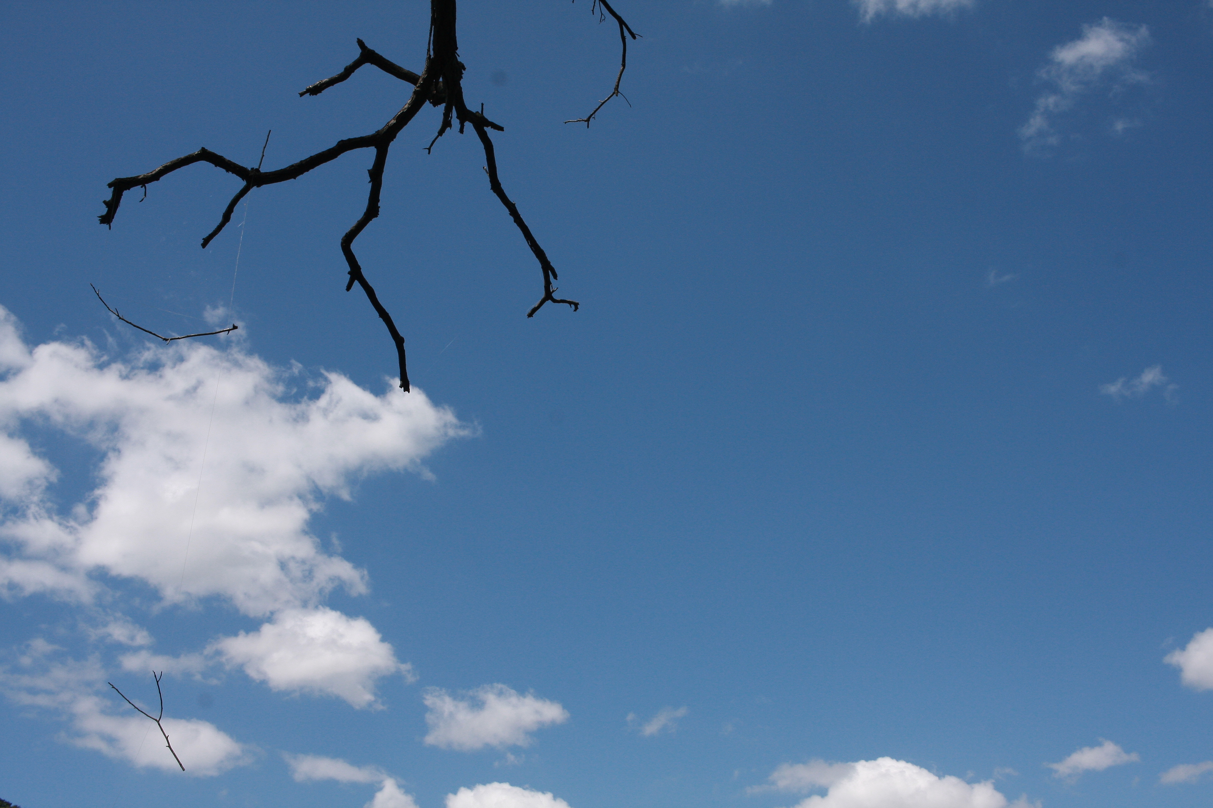 나무가지가 하늘에 떨어지는 것 같은데 실은 나무가지 떨어지는 것이 아니라 거미줄이 나무를 붙들고 있는 모습이다.