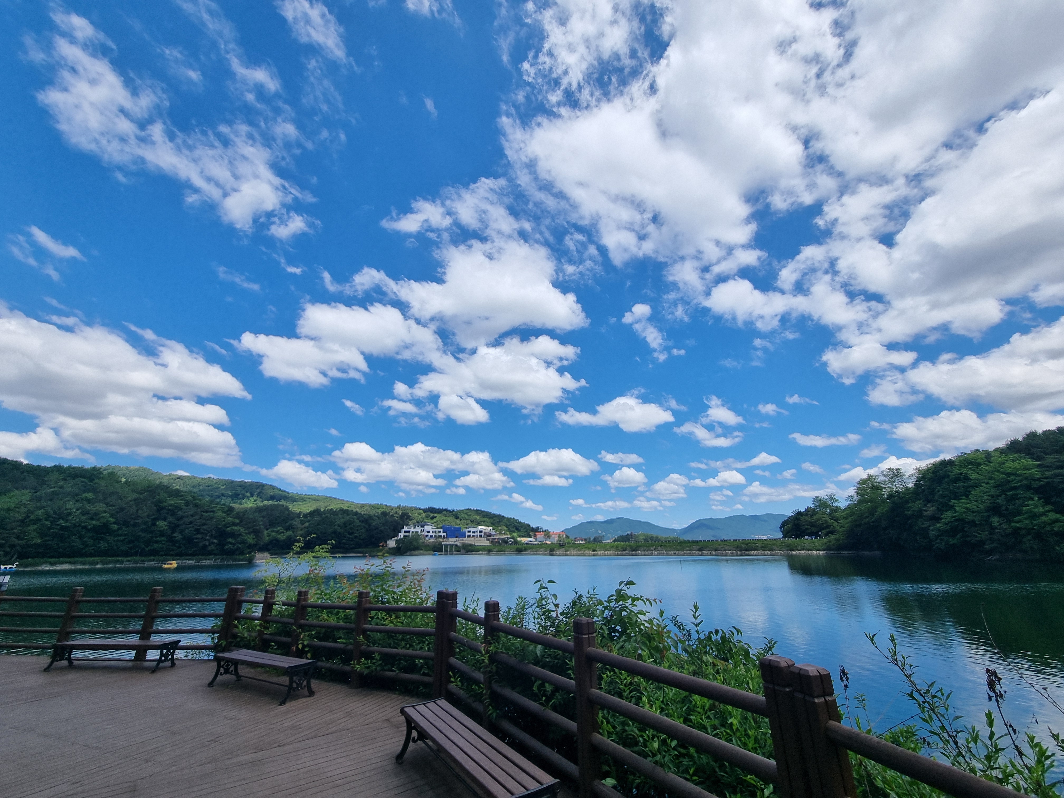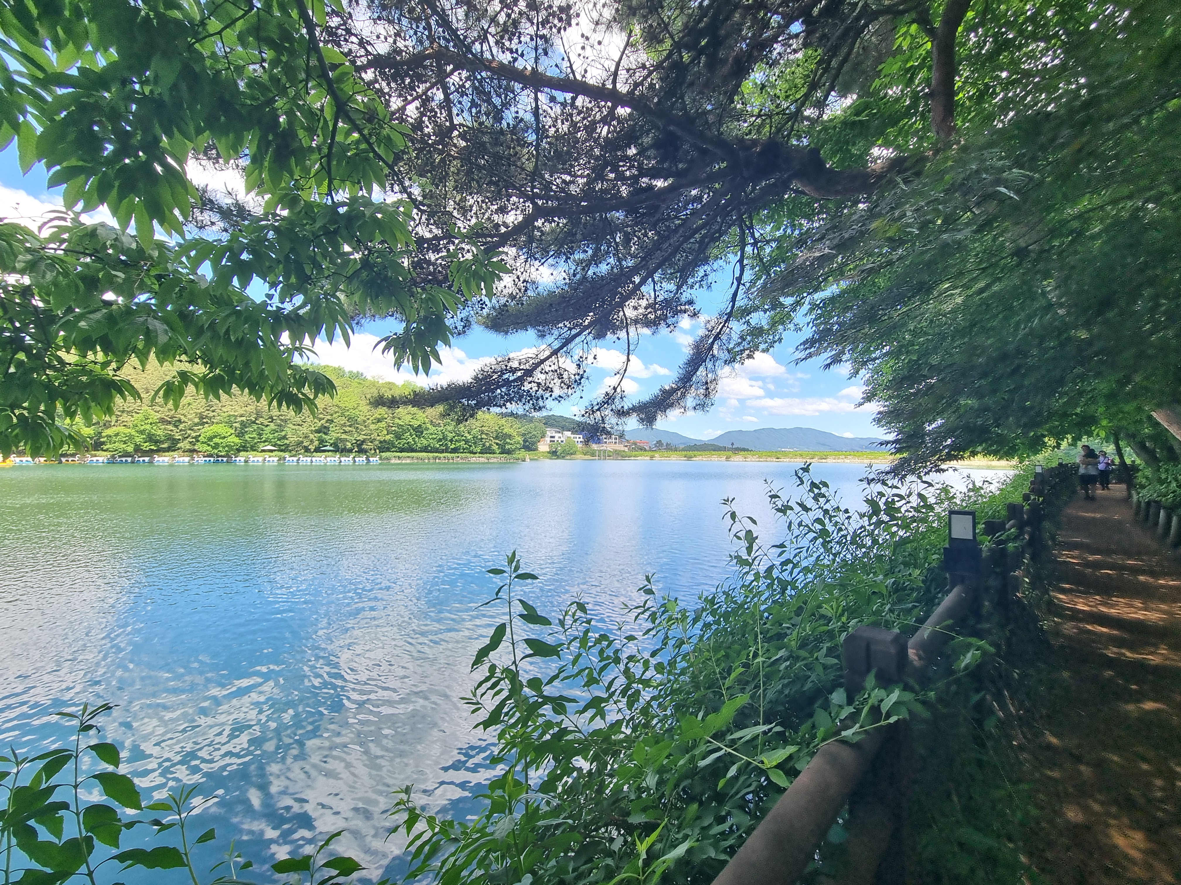 고모 저수지 둘레길을 다 둘러보지 못하고 1시간 정도 도보로 걸어보았다. 햇살이 너무나 좋고 공기도 풍경도 너무 좋아서 감탄이 나왔다. 호수에는 오리배도 보였는데 사람들이 배를 타고 이동하는 모습이 보였지만 사진을 찍어야해서 패스하고 그냥 둘레길을 걷기로 했다.