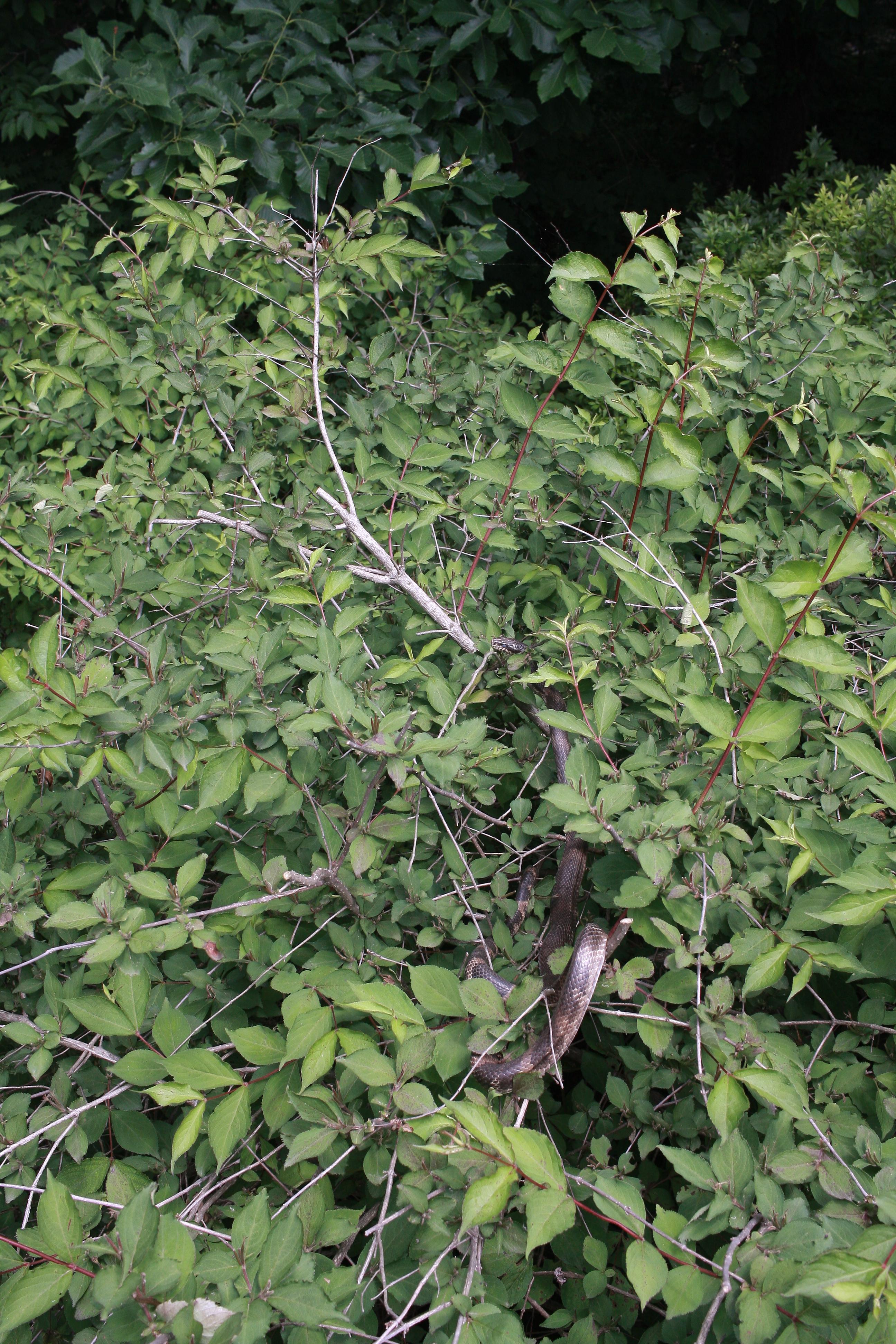 뱀 한마리가 나무위로 올라와 자신의 몸을 말리는 일광욕을 하고 있다.