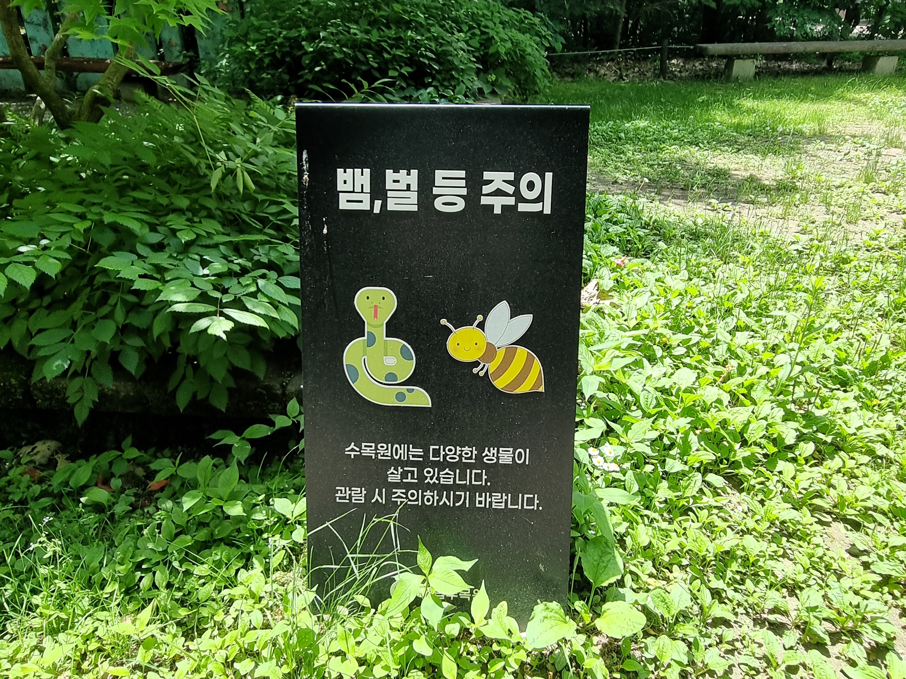 수목원을 올라오면서 뱀벌주의라는 경고판을 보았다. 설마있을까 했는데...