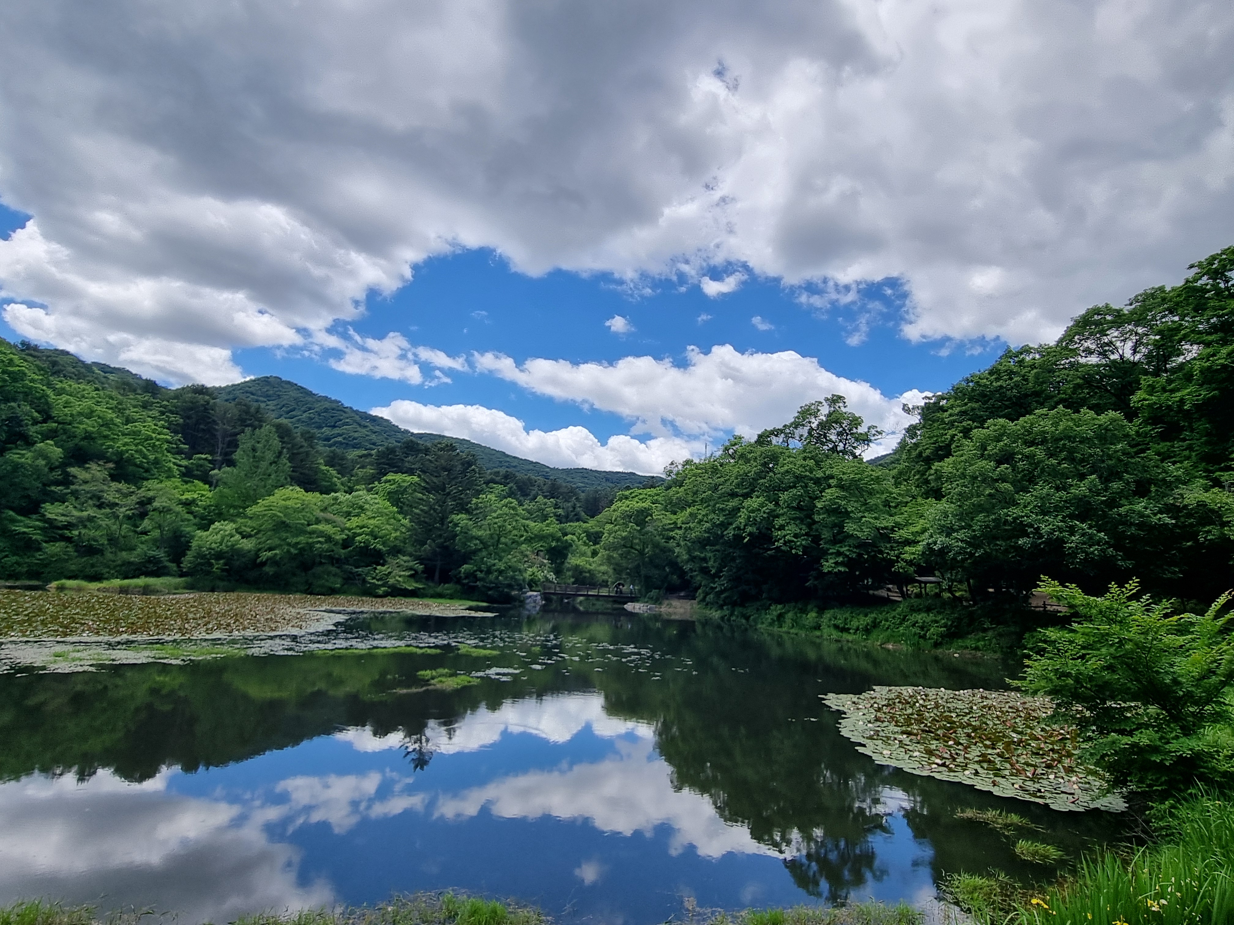 하늘의 구름들이 호수에 비춰졌다. 너무나 멋지다. 구름들이 내려와 잠시 쉬어가는 것 같다.