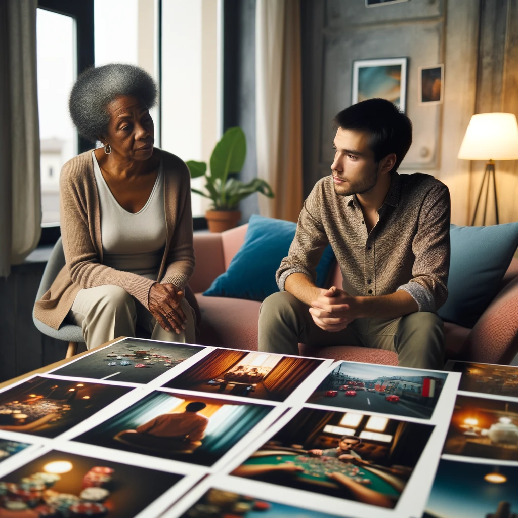 - 활동: 과거의 중요한 순간을 재연한 사진을 찍고, 그 사진에 대해 이야기합니다. 첫 도박 경험, 큰 손실 등을 재연하여 부정적인 감정에서 벗어납니다.