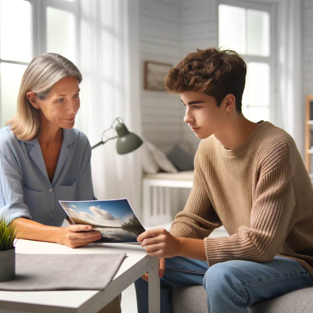 활동: 내담자가 가지고 온 사진을 공유하고 토론한다. 이미지에 묘사된 공통 주제와 감정을 식별한다.