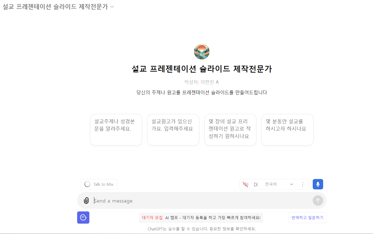 ChatGPT - 설교 프레젠테이션 슬라이드 제작전문가