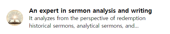 바로가기 : https://chatgpt.com/g/g-StvLx7rRr-an-expert-in-sermon-analysis-and-writing