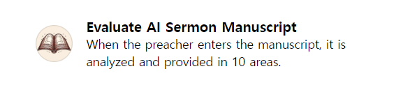 바로가기 : https://chatgpt.com/g/g-YLClFnnLU-evaluate-ai-sermon-manuscript
