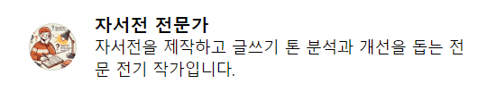 자서전 전문가 바로가기 : https://chatgpt.com/g/g-DQ8m8Mwwv-jaseojeon-jeonmunga