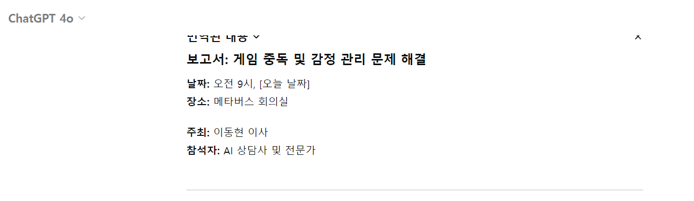 게임 중독 및 감정 관리 문제 해결 : 전문 인공지능에게 인간의 문제에 대한 시각과 대안을 제시을 요구하다.
