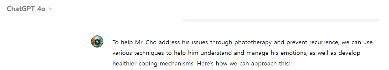 오늘은 생성형 인공지능 gpts들을 초대하여 내담자의 문제를 다양한 각도로 다루어 보고자 합니다. 지금까지는 특정한 인공지능을 사용하여 내담자의 문제를 다루었다면 본 포스트는 다양한 심리전문 상담 인공지능을 통해 내담자의 문제를 이해하고 살펴보는 시간을 가지도록 하겠습니다. 현실세상의 사건을 기반으로 가상공간에서 5명의 인공지능을 불러와 그들에게 인간의 문제를 바라보고 어떻게 생각하는지, 그리고 그 문제를 어떻게 해결할 수 있을지에 대한 조언을 듣는 시간을 가졌습니다.