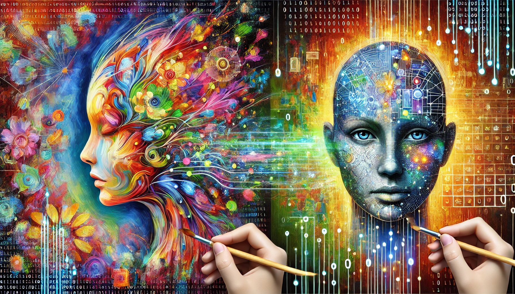위의 이미지는 인공지능 챗gpt로 그린 그림으로 인공지능이 사람과 인공지능 인간을 그리는 과정을 표현한 것으로 사람이 그림을 그리듯 인공지능이 사람처럼 가짜 인간을 그리는 모습을 표현한 것이다.