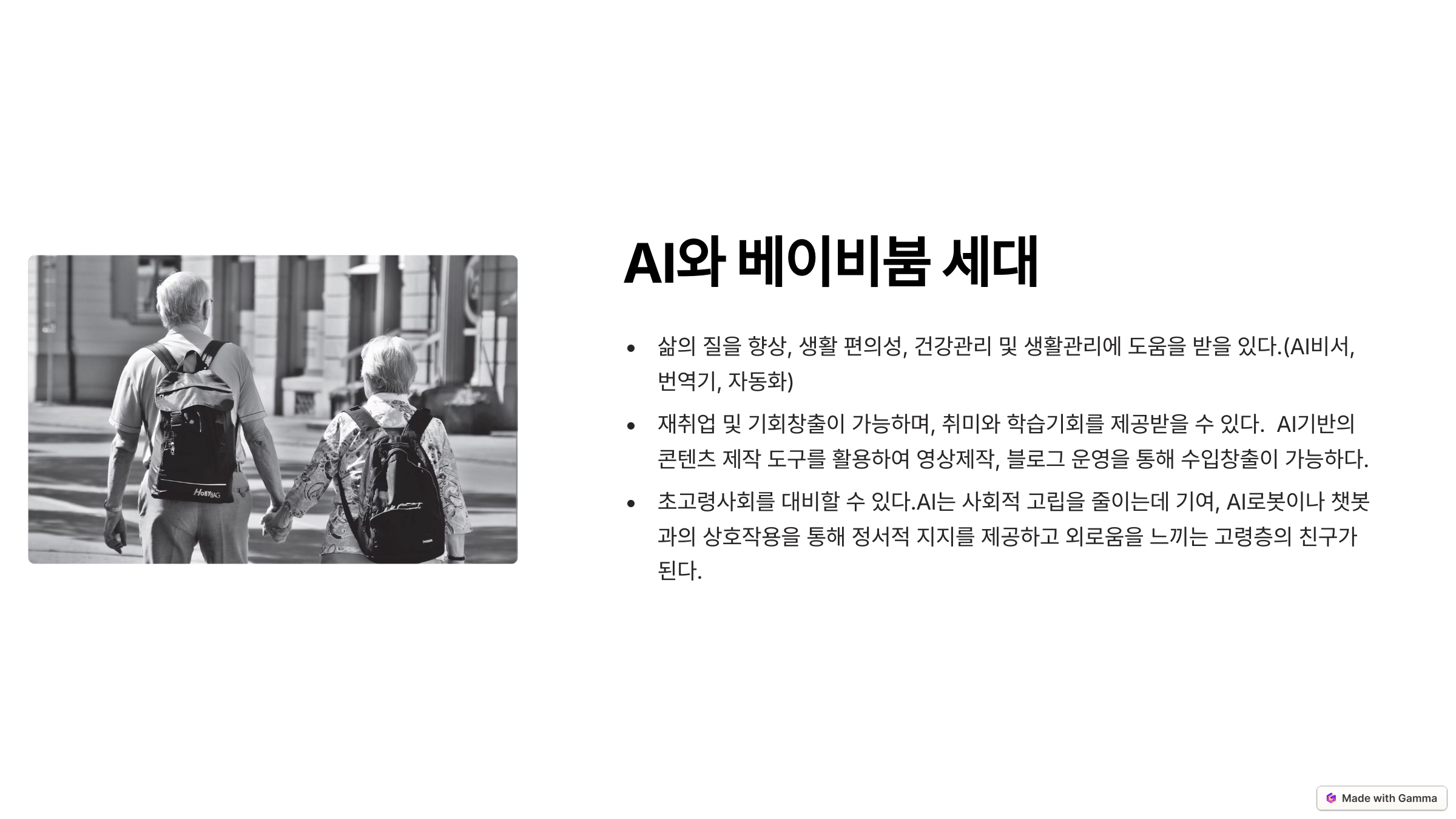 퇴직 후 ‘나는 이제 뭘 해야 하지’라는 고민은 더 이상 필요하지 않습니다. AI를 활용하면 새로운 일거리, 의미 있는 활동, 그리고 수익 창출의 기회를 만들 수 있기 때문입니다.