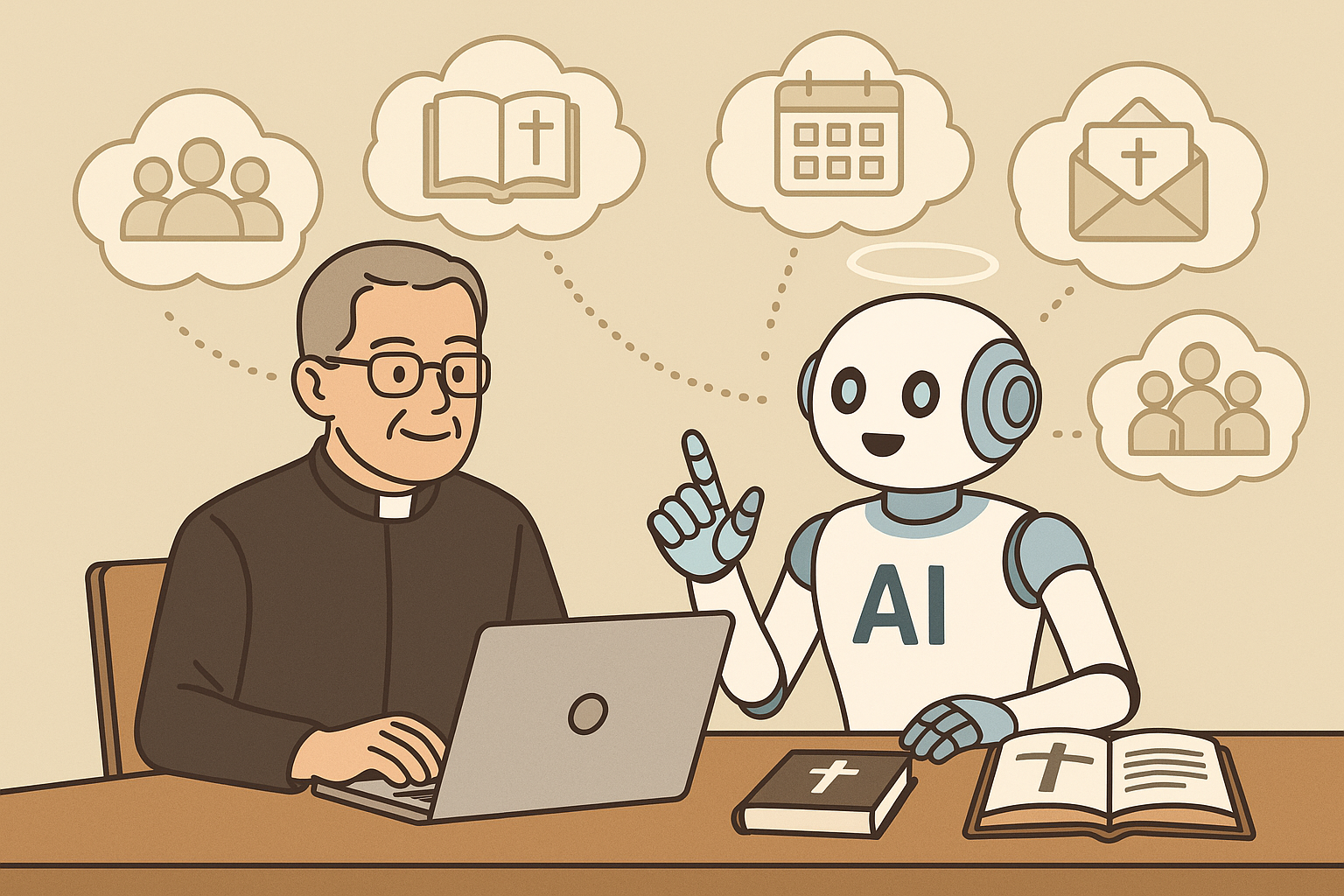 주일 예배를 준비하는 목회자라면, AI의 존재를 더 가까이 느낄 수 있다. 설교 본문을 찾기 위해 성경 검색 프로그램을 사용하고, 관련 주석을 찾는 과정에서 AI 추천 기능이 작동한다. 교회 주보를 만들 때, 디자인 템플릿을 제안하는 것도 AI다. 심지어 설교 예화나 성경 지리 정보까지, 인공지능이 빠르게 찾아주니 예전처럼 책을 여러 권 뒤적이지 않아도 된다.