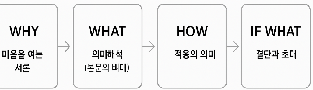 공감(Why) → 진리(What) → 적용(How) → 결단(If Now What)